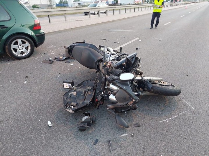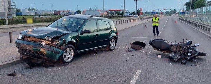 Policjanci ponad 2 godziny pracowali na miejscu wypadku drogowego, do którego doszło w niedzielę wieczorem na ul. Aleja Rodła w Malborku. Funkcjonariusze wstępnie ustalili, że mężczyzna kierujący Volkswagenem wyjeżdżając ze stacji paliw wjechał „pod prąd” na dwupasmowej jezdni i zderzył się czołowo z nadjeżdżającym motocyklem. Kierowcę jednośladu z obrażeniami ciała przewieziono do szpitala.