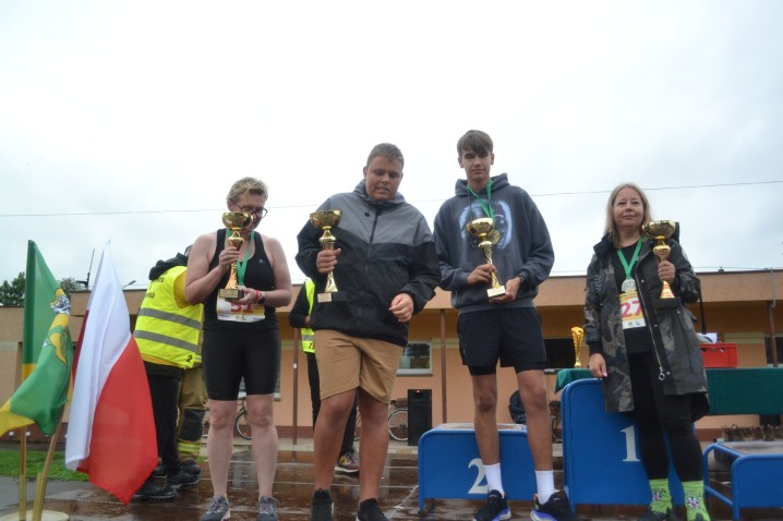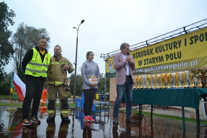 Wszyscy uczestnicy wydarzenia otrzymali na mecie medale, a najlepsi puchary, które wręczali: dyrektor GOKiS Stare Pole i sołtys sołectwa Stare Pole.
