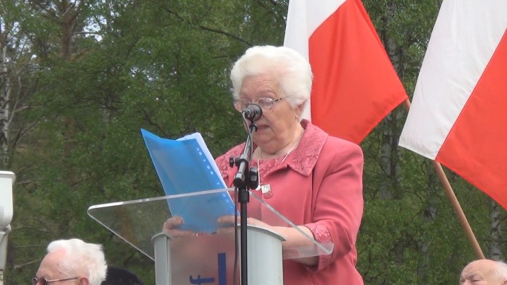 PROGRAM UROCZYSTOŚCI: – Hymn Państwowy – powitanie – przemówienia byłych więźniów KL Stutthof: Petronela Brywczyńska, Marek Dunin-Wąsowicz